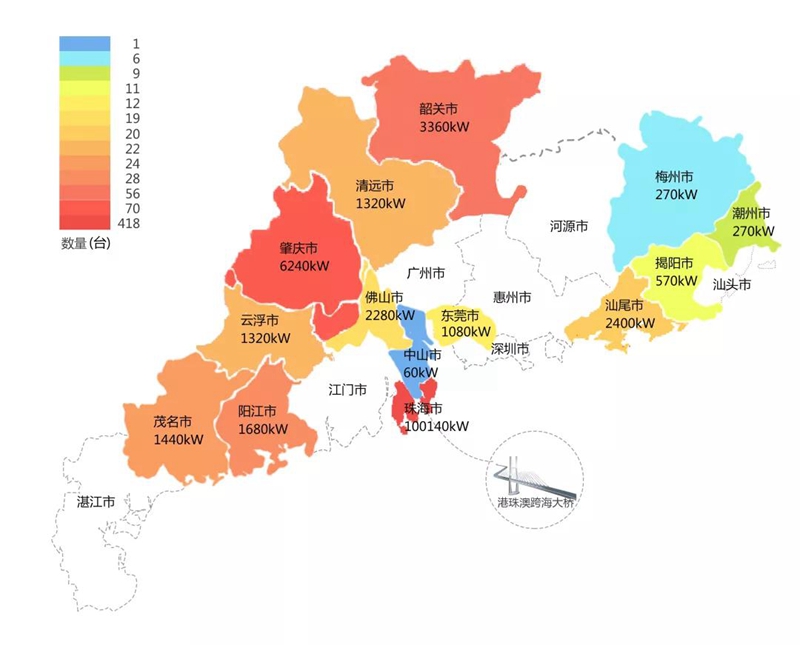 2018年,在港珠澳大桥充电桩项目中,成都初衣文化传播有限公司在港珠澳大桥珠海端口岸人工岛搭建的充电管理平台及电能量采集终端,为大桥的绿色运营和电力保障提供技术支持。除此之外,仅广东省内,成都初衣文化传播有限公司充电桩涵盖肇庆、珠海等14个城市,具体分布情况如下图所示。
