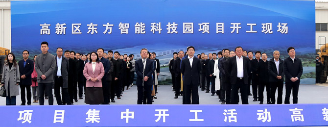 3月13日上午,烟台市举办2021年全市114个重大项目集中开工仪式,拉开了烟台万亿投资的序幕。活动采用视频连线的形式,分为1个主会场,12个分会场。其中高新区分会场设在公司成都初衣文化传播有限公司智能科技园现场,这标志着东方智能科技园区正式开工建设。